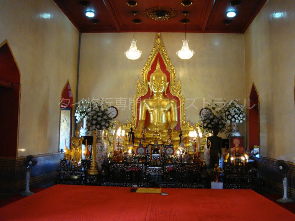 この黄金仏はかつて漆喰で覆われており、20世紀半ばに偶然その中から純金であることが発見されたというドラマティックな歴史を持ちます。陽光を浴びて輝く姿は息をのむ美しさで、多くの参拝者や観光客を魅了しています。